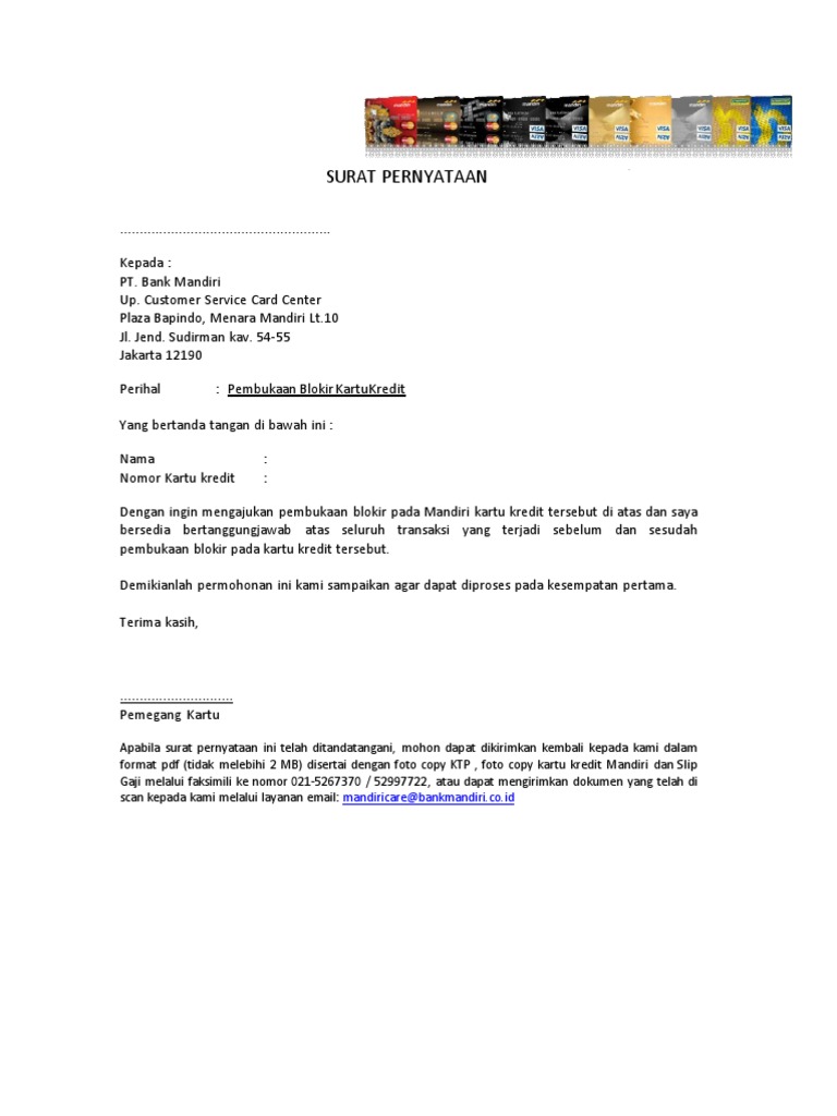 Financer.com membandingkan kartu kredit terbaik di indonesia. 10 contoh surat pernyataan terbaru. Penghasilan pertahun minimal 25 juta. Dapatkan kartu kredit terbaik di financer.com. Contoh surat pernyataan penutupan kartu kredit.